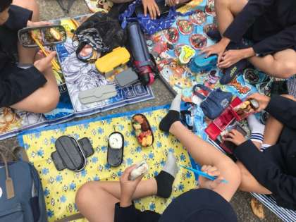 、付近の散策をしていた1組、4組、6組、7組が宇治川中洲で合流してお弁当のはずでしたが・・
