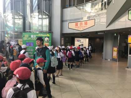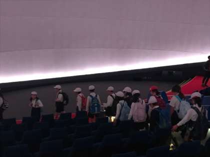 1時間ほど、たっぷりとプラネタリウムで秋の星空の学習をしました。これから本館をグループ行動で見学します。