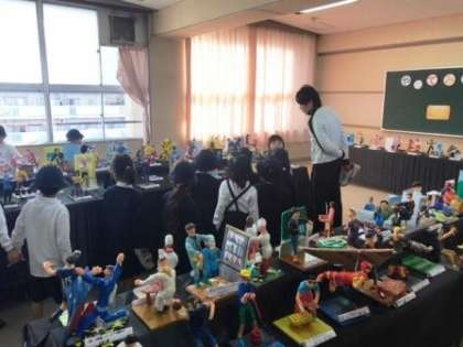 下〜分校で2年生の工作と3年生の絵画を鑑賞する4年生
