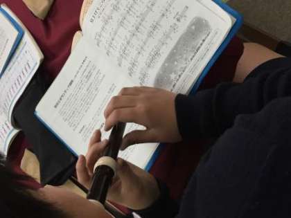 6年生では、今週の音楽の時間には、「ふるさと」「見上げてごらん夜の星を」「群青」を取り上げて学習する予定です。今日は、1組と4組の授業がありました。被災者を力づけ共にがんばろうという気持ちを込めて歌われていると教わり、リコーダーで演奏しました。