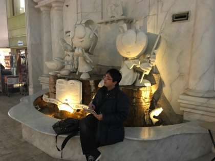 本部の噴水前には、先生が交代で誰か一人いるようにしています。10時から11時までの当番は太田先生。