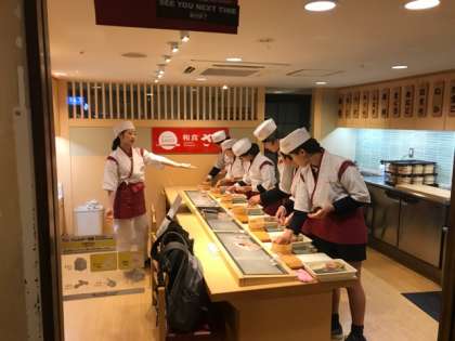 超人気のアクティビティの一つがお寿司屋さん体験。朝イチの予約でやっとこの時間の体験です。朝からテキパキ動けたからこそですね。