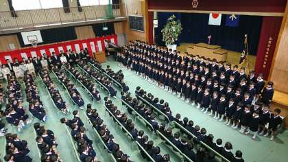 さあ、1年生の皆さん、大阪一児童数の多いこの友渕小学校でたくさんのことを学んでいきましょう!