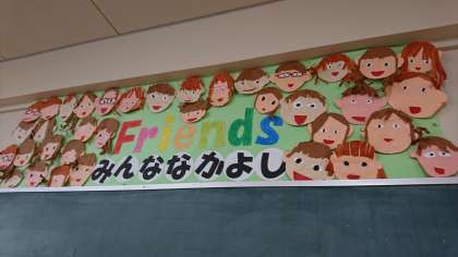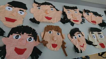 4年生は、図工の学習で「4年生になったぼく・わたし」をテーマに、自分の顔を作りました。両手でよく揉みこんで柔らかくした色画用紙を、丁寧にちぎって作ります。細かいパーツも指先を上手に使いながら製作しました。笑顔がたくさんの、表情豊かな作品が完成しています。