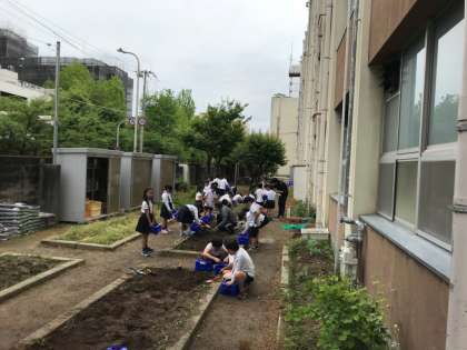 3年生は理科の時間に、ほうせんかの種を植えました。