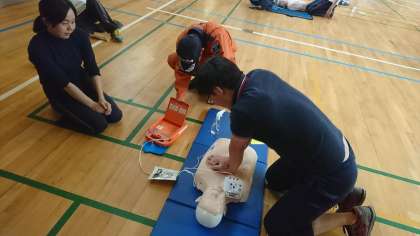 児童の大切な命を守るため、万が一の時のために心肺蘇生法やAEDの使用方法を学びました。