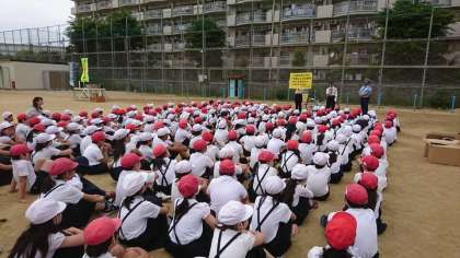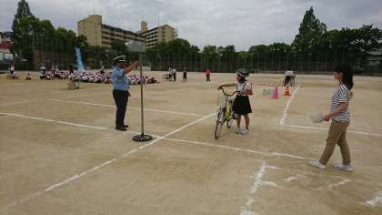 都島警察署の方にお越しいただき、自転車の正しい乗り方についての交通安全学習を実施しました。自転車はとても便利な乗り物ですが、最近では歩行者との接触事故などがとても増加しているそうです。一つ一つ確実に安全確認をすることで事故を防ぎ、自分の身も守ることができることを学ぶことができました。