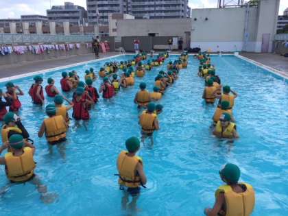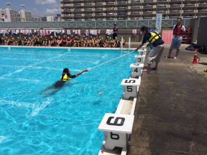 川で流された時の身の守り方、川で流されている人の救助のしかたを学びました。