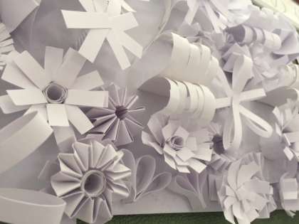 懇談にお越しの際は、ぜひ階段の踊り場に飾られた他学年の子どもたちの作品にもご注目ください。どの学年の子どもたちも、すばらしい作品を完成させています。特に高学年は見応え十分。いろいろな作品を現地でご覧ください。