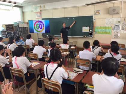 現在、大阪市の小学校にはC-NET(City Native English Teacher)というネイティブの英語教員が配置されています。C-NETが来る日は、担任に加えてC-NETも英語の授業に参加します。