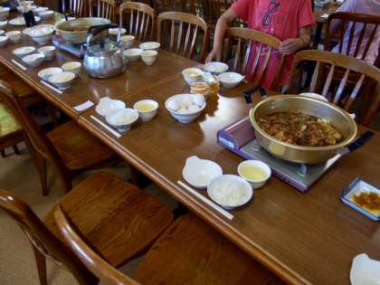 夕食は「とりすき」です。山登りでお腹を空かせた子どもたちは、食欲も旺盛です。
