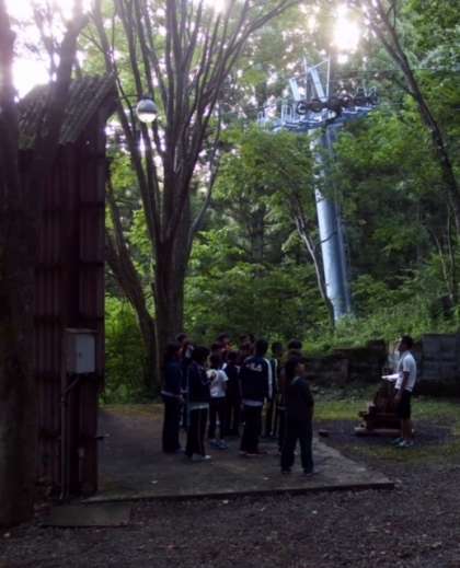 キャンプファイアーの係が、みんなには内緒で秘密練習中。
