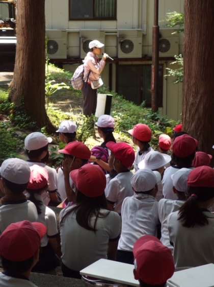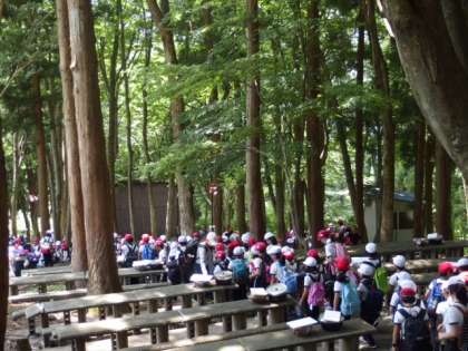 お昼は飯盒炊爨によるカレー作りです。宿舎の裏の林の中にある飯盒炊爨場に移動します。