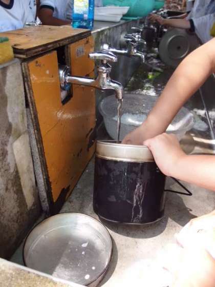 ごちそうさまをしたグループから、片づけを始めます。食事は作って食べたらそれで終わりではありません。片づけの大変さ、大切さにも気づき、協力することの大変さにも気づけたことと思います。