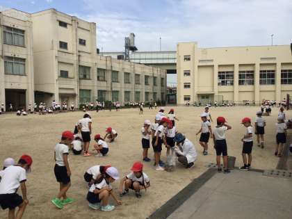 前日の職員作業で片付けたものの、細かな枝や葉が所々見当たる運動場を、校内美化活動として、1時間目の前に2年生が、3時間目の前に1年生がきれいにしました。いよいよ運動会に向けての練習が本格化するこの季節。きれいになった運動場で、しっかりがんばって本番を迎えたいと思います。まだまだ暑い日が続きます。水分補給や汗の始末をきちんとできるよう、ご協力よろしくお願いします。
