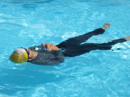普段のプール水泳の授業では、何気なく泳いでいた子どもたちも、服を着て泳ぐと「うまく泳げない」「ぬれた服が重たく感じる」「体が動かしにくい」などの感想が口々に出ていました。