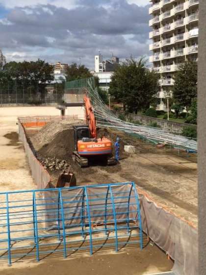台風被害の復旧と本校運動場の貯留槽工事により、近隣の皆さまには多大なるご迷惑をおかけしております。三連休明けには、運動場をより運動会仕様にできるように、運動場の土の搬出が終わり次第、フェンス撤去、柵の縮小を予定しています。