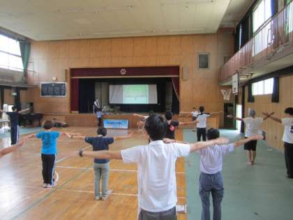 子どもたちが学校生活の中で熱中症にならないようにするため、熱中症対策の専門家の講師の方に来てもらい、熱中症予防指導の研修を受けました。