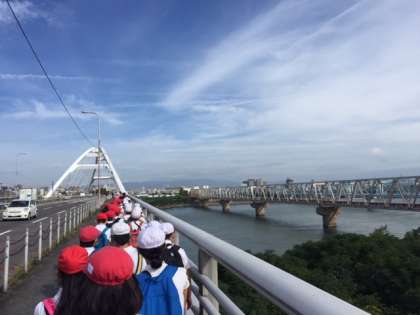 大阪の水源、淀川を歩いて渡り、浄水場に向かいます。