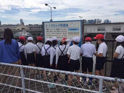 硫酸ばんどという薬品を使い、水中の不純物を取り除く様子を見ています。