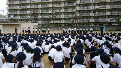 各学級から後期代表委員が選出され、今日の全校朝会で自己紹介をしました。