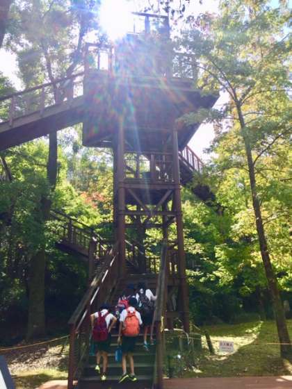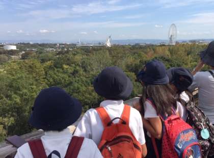 ソラードという空中の歩道を通り、展望台に行きます。ソラードからは、気の高いところも観察できます。展望台からは太陽の塔やエキスポシティが一望できます。