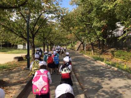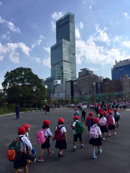 天王寺公園を出て帰路につき、現在大川沿いを分校に向かって歩いています。