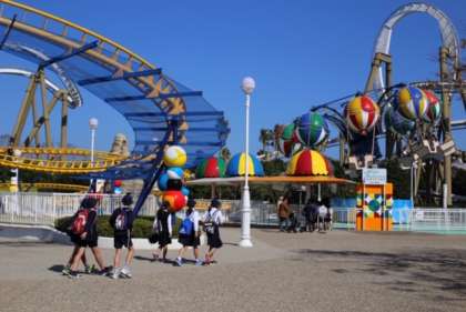 グループに分かれて、パルケエスパーニャのアトラクションを楽しんでいます。