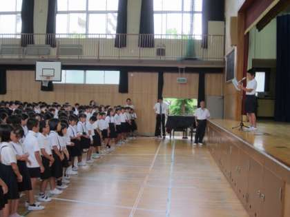 今日の終業式では、校長先生や生活指導担当の先生から楽しい夏休みを過ごすために「交通ルールを守る」「子どもだけで遠出しない」「知らない人についていかない」「水の事故にあわないように気をつける」などの話がありました。