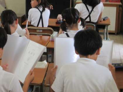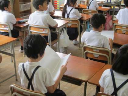 講堂での終業式の後、子どもたちは、各教室で担任の先生からも夏休みの生活について、より詳しく、家庭での学習や生活の仕方について話を聞きました。