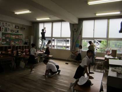 今回の土曜日の終業式では、学校の大掃除に保護者の方にも参加していただき子どもたちだけでは普段できない窓・壁などをきれいにしていただきました。