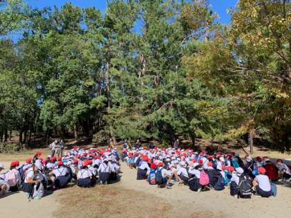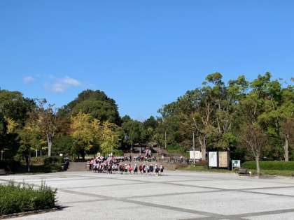 服部緑地公園に到着。ここからはグループに分かれて、オリエンテーリングで公園を回ります。
