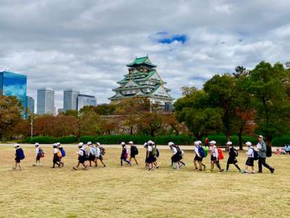 西の丸庭園に到着。ここからは、班ごとに分かれてオリエンテーリングをします。