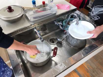 さすがに6年生ともなると、しっかりと分業ができており、炒めている間に洗い物をするグループもあり、手際よく調理を進めています。