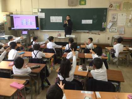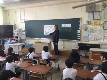 国際理解教育の取り組みとして、普段、本校におられるエディ先生に来ていただき、英語活動の授業を行いました。アルファベットの発音や英語でじゃんけんなど、子どもたちも先生も、本当に楽しそうにノリノリで活動していました。
