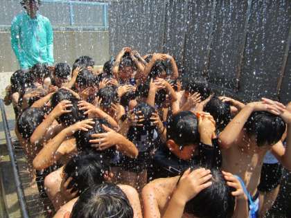 本校のプールは、分校からは少し距離がありますが、子どもたちはプールを楽しみに本校にやってきています。