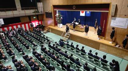 子どもたちは自分の名前が呼ばれると、しっかりと大きな声で返事をし、校長先生から堂々とした様子で卒業証書を受け取っていました。また、小学校生活の思い出を込めて別れのことばを言ったり、別れの歌を歌ったりしました。6年生の心の中にいつまでもしっかり残るすばらしい卒業式になったと思います。
