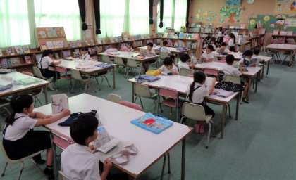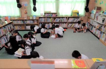 今日は分校の様子です。図書館をのぞくと2年生が静かに読書をしていました。