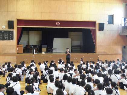 子どもたちが大きな掛け声で盛り上げてくれたので、全員で楽しく踊ることができました。学年全体のつながりが、さらに深まった集会になりました。