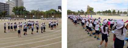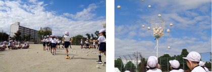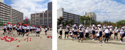 1年生は団体演技(ダンス)と競技(玉入れ)。