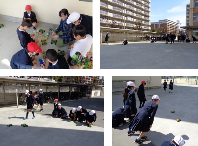 すぐ近くの校舎横広場では、5年生の理科「電流と電磁石のはたらき」の学習中です。