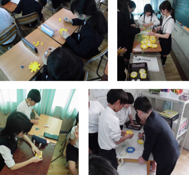 また、他のクラスでは黄色いヒマワリを模したようなネックレスを作成中でした。