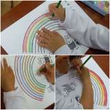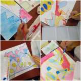 同じ色がとなりにならないように、というルールを守って絵の具で色をつけています。