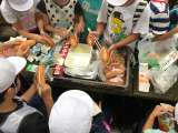 最後の活動 カートンドック(昼食)作りです。まずは作りかたの説明を受けています...