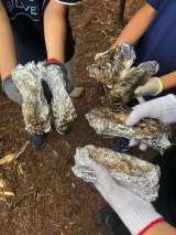 ホットドッグをアルミホイルで巻き、牛乳パックに入れて、そのまま牛乳パックごと燃や...