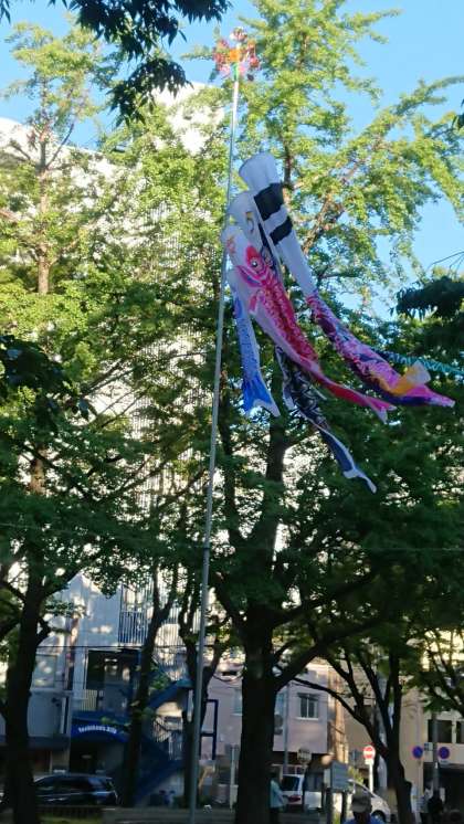 みんなで元気よく「こいのぼり」の歌を歌いながら、こいのぼりをあげました。 帰りにはお菓子もいただきました。お世話いただきましたみなさん、ありがとうございました。