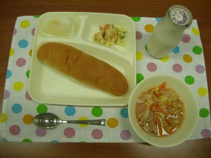「えびグラタン」は、小麦粉を色づかないようにからいりして、ルゥとして使っています。マカロニは、「ツイスト」というねじった形のマカロニを入れています。グラタンは、いつも子どもに好評で、残食はありませんでした。