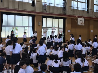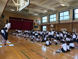今日(17日)は、月2回の児童集会の日です。今回は「学校クイズ」が行われました。名前に山の字がついている先生の数や、校長室のクマのぬいぐるみの数など、学年ごとに違う問題が出されました。班ごとの結果はお昼の放送で発表されました。さあ何問正解したでしょうか。
