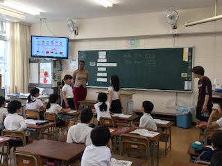 今年も英語の学習をがんばっています。毎週金曜日は、C-NETの先生と一緒に学習しています。今年もKaren先生が来てくれています。今日は3年生と5年生の学習がありました。