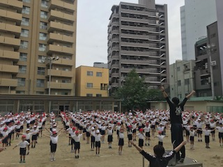 運動会に向けて、ラジオ体操の練習をしました。細かい手の動かし方や体の伸ばし方など、江口先生の見本を見て、上手に体操ができるようになりました。